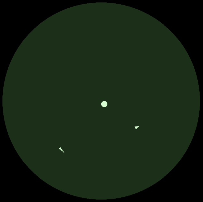 So, our game so far has 2 ships (one controlled by wasd, and one by the arrow keys), but I’ve made them both triangles since I’ve been basing the look of this one one blurry cool looking picture: